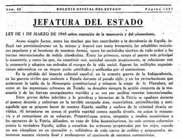 Y agrega: “En España prevalece todavía la visión más oscura de la masonería, como la de un ente secreto, satánico e infernal, causante de todos los males. Esta visión estaba tan arraigada en la mente de muchos españoles -y probablemente aún lo esté- que por eso los masones tuvieron que esperar unos cuantos años después del fallecimiento de Franco para poder regresar del exilio. Y algo que también parece muy significativo: la masonería no fue legalizada hasta dos años después que el Partido Comunista de España (PCE). Franco, no podía dormir tranquilo porque estaba convencido de que la masonería es un terrible enemigo que no se rinde jamás. Esa era la peor de sus pesadillas”.